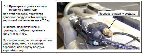 • давление воздуха в 4-м контуре тормозной системы не ниже 7 бар
