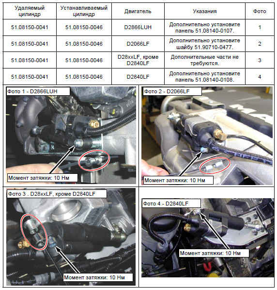 - Для двигателя D08 установите цилиндр 51.08150-0042.