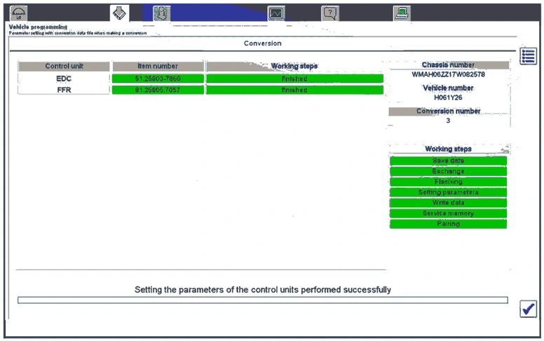 Вам необходимо установить в редактор конфигурации MAN то же, что и на транспортном средстве, и возобновить процедуру преобразования.