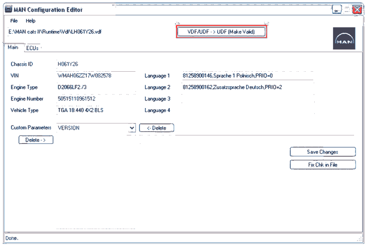 Откройте файл VDF с помощью MAN Configuration Editor и преобразуйте его в UDF.