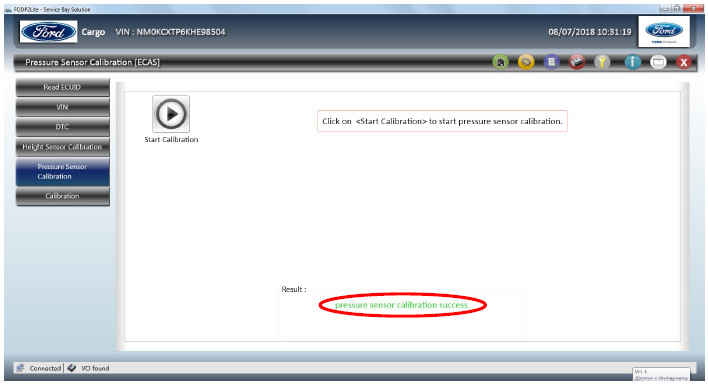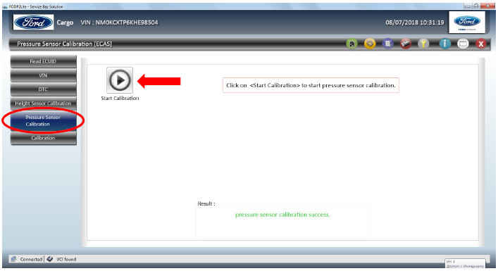 Процесс калибровки датчиков давления автоматический. Не используйте транспортное средство и FODP2 Lite во время калибровки до получения сообщения об окончании процесса калибровки.