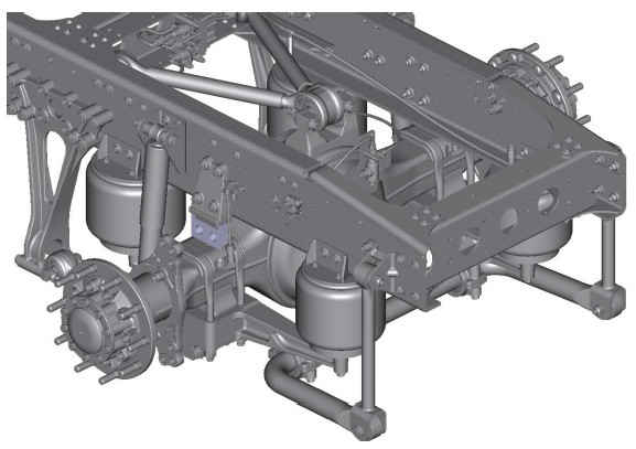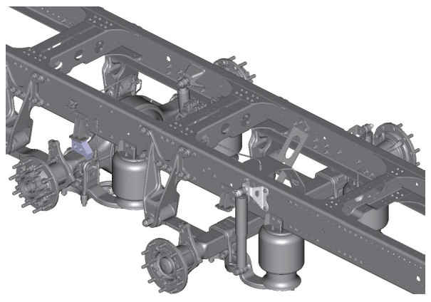 При подъеме шасси автомобиля соблюдайте осторожность! Максимальная высота шасси ограничивается ограничителем хода отбоя, расположенным в амортизаторе. Амортизатор может достигнуть ограничителя хода отбоя раньше, чем будет достигнута максимальная высота пневматических упругих элементов. При продолжении подъема шасси после того, как амортизатор упрется в ограничитель хода отбоя, возможно повреждение амортизатора.