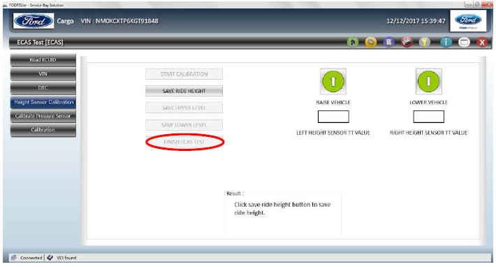 • Нажмите кнопку «FINISH ECAS TEST» для программирования полученных данных в блок ECAS.