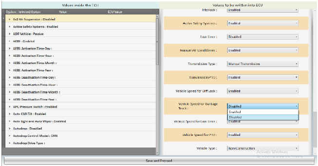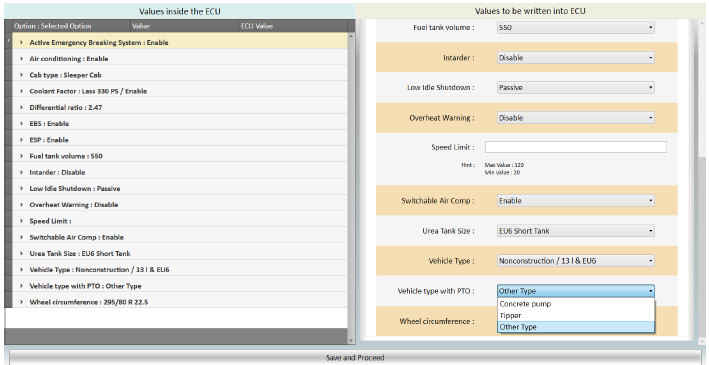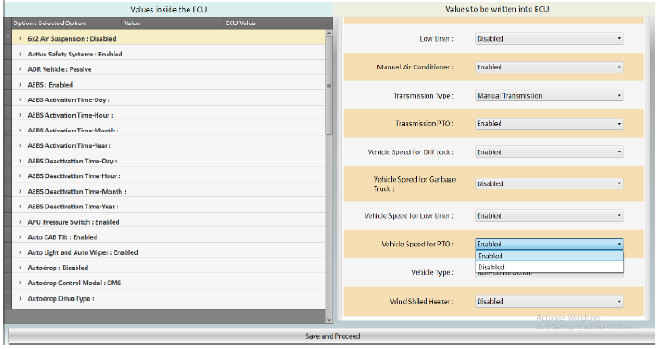 - PTO – для отображения информационного значка на водительском дисплее о состоянии включения PTO выберете Enabled.
