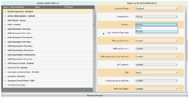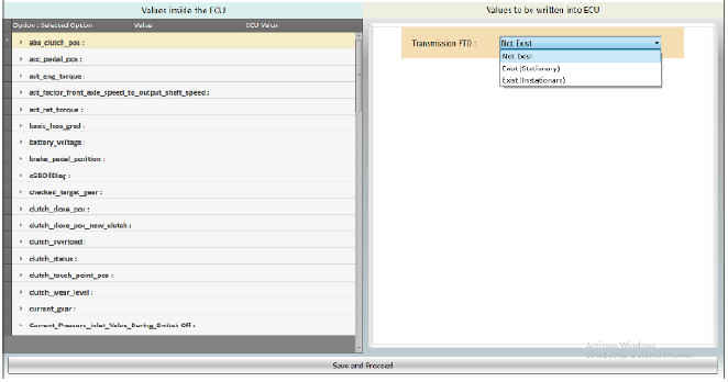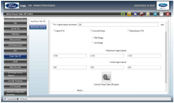 Калибровка параметров относящихся к PTO в блоке BCU возможно только для версии ПО блока 4.30 и выше. При версии программы 4.20 и ниже необходимо обновить ПО с помощью функции Flash Programming через запрос новой версии программы.