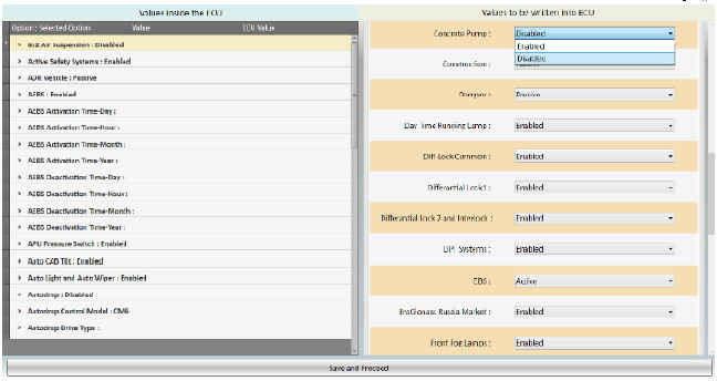 - Concrete Pump – Если на автомобиле установлен бетонный насос выберете Enable, для всех остальных вариантов выберете Disable.