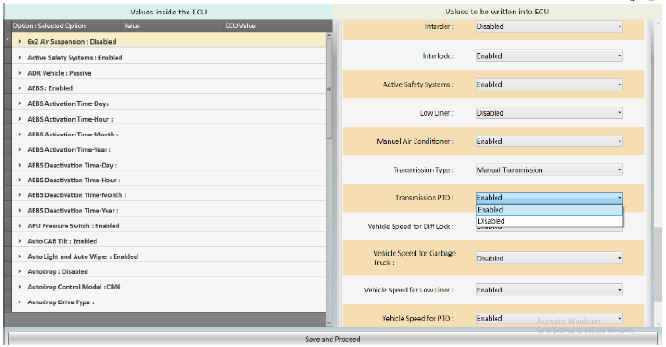 - Transmission PTO - если автомобиль оборудован PTO установленной на коробке передач выберете Enabled, для все остальных вариантов Disabled.