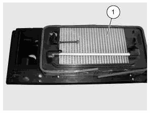 Блок управления (1) отопителя/кондиционера находится сбоку кожуха отопителя.