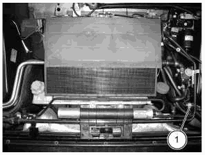 Электромагнитный клапан переднего кондиционера (1) находится спереди слева у передней стенки.