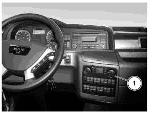 Устройство управления обогревом кабины водителя с кондиционером (1) находится на приборном щитке.