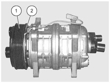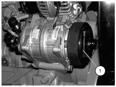 Компрессор с электромагнитным сцеплением (1) находится с правой стороны автомобиля.