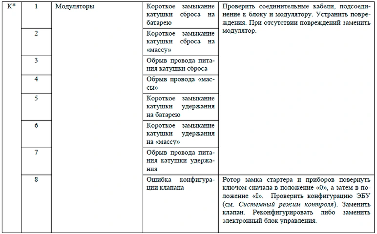 Если в системе присутствуют несколько активных ошибок, то после устранения первой ошибки будет выдаваться световой код второй активной ошибки и т.д. (до устранения всех неисправностей).