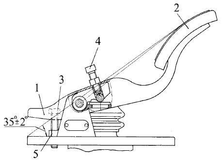1 – педаль; 2 – площадка педали; 3 – установочный винт; 4 – регулировочный винт; 5 – контргайка.