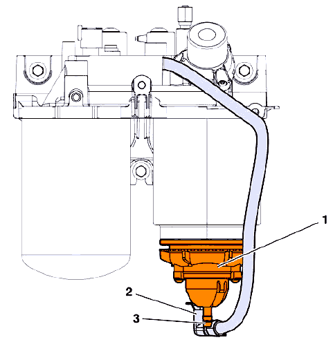 Во время замены главного фильтра (9) штифт клапана (25) закрывает клапан для выпуска воздуха (24) , чтобы не допустить вытекания топлива наружу при демонтированном фильтре.
