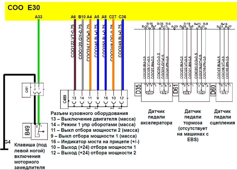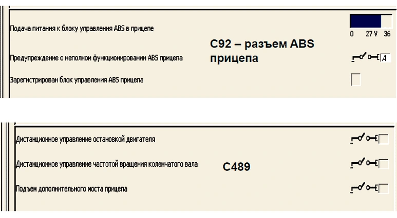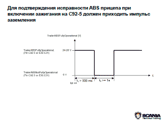 Для подтверждения исправности ABS прицепа при включении зажигания на С92-5 должен приходить импульс заземления