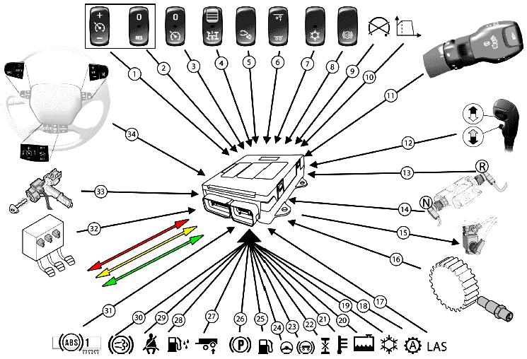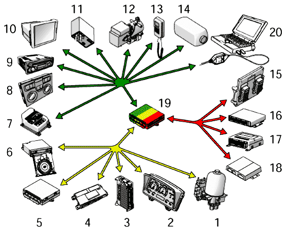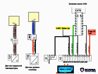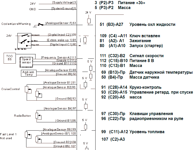 - Сигнал скорости от тахографа поступает по шине и по отдельному проводу (111)