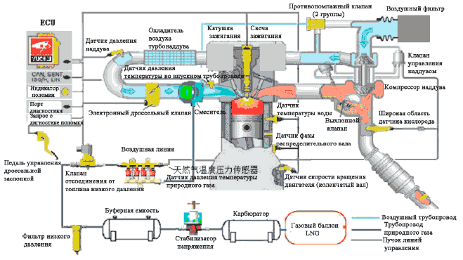 Схема системы двигателя на природном газе CNG компании Юйчай