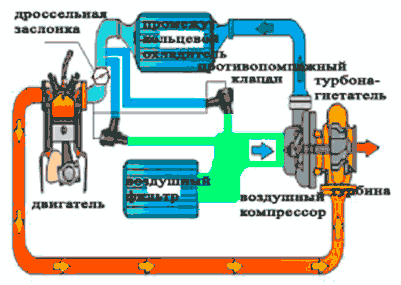 В обычном состоянии, компенсационный клапан закрыт. Когда он открывается, избыточное давление из нижней части турбонагнетателя возвращается в линию подачи воздуха до турбонагнетателя, таким образом, предотвращается быстрый износ компонентов турбонагнетателя.