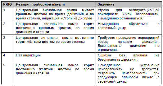 Диагностированные блоком управления и сохраненные в памяти неисправности имеют различный уровень риска, поэтому каждому отдельному сбою система присваивает степень приоритетности.