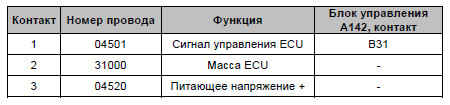 Таблица разводки контактов, модуль зажигания 3, цилиндр 3 (T112)