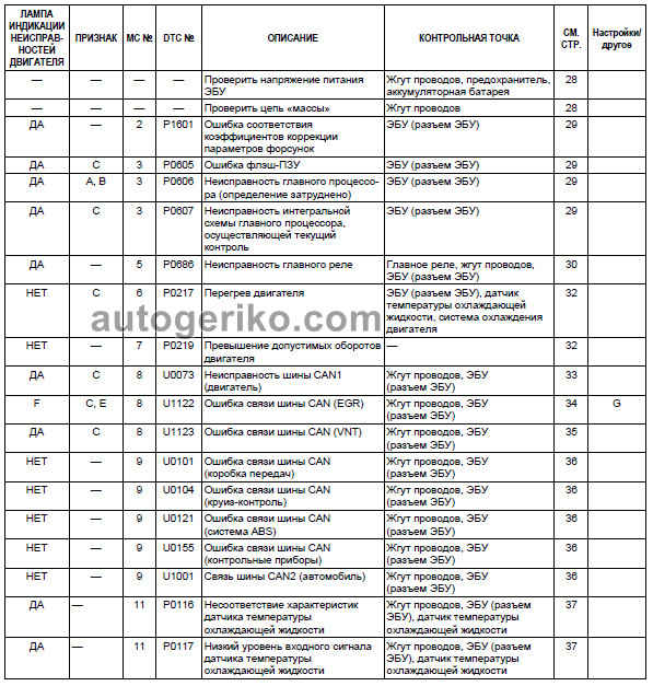 DTC № — диагностический код неисправности (для ПК с диагностическим оборудованием)