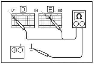 (3) Измерить сопротивление между контактами PGD1 (D1), PGD2 (E4), PGD3 (E5) и отрицательным выводом аккумуляторной батареи.