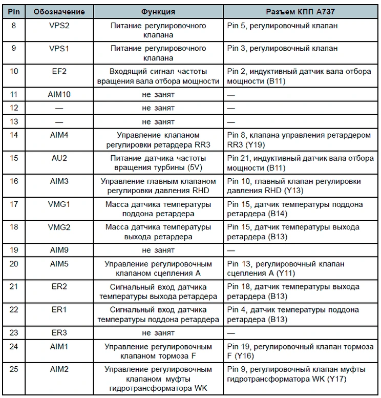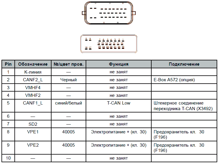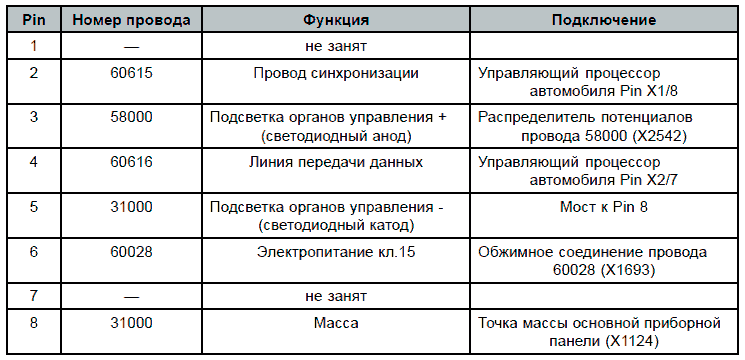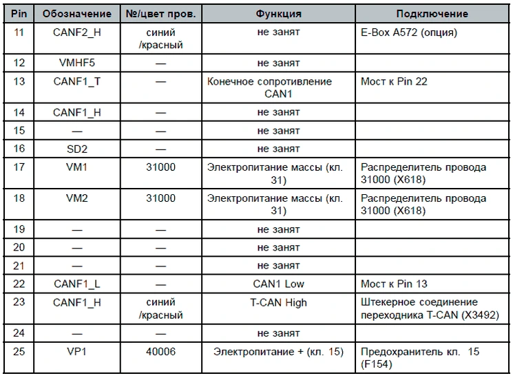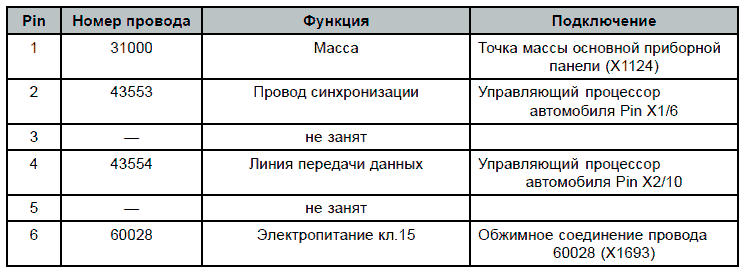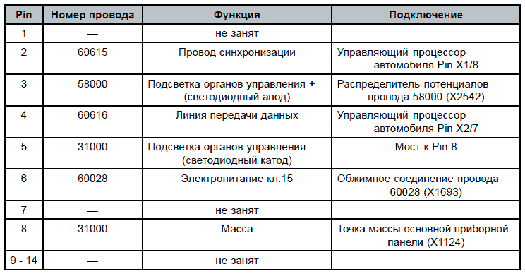 Таблица штекерной разводки контактов