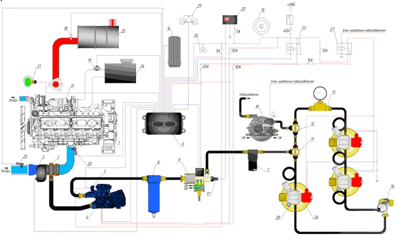 Принципиальная схема питания газового ддигателя