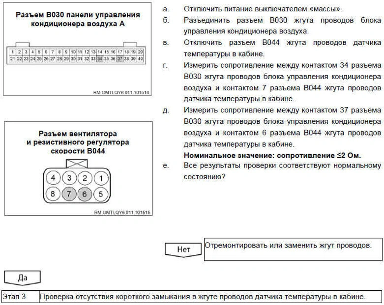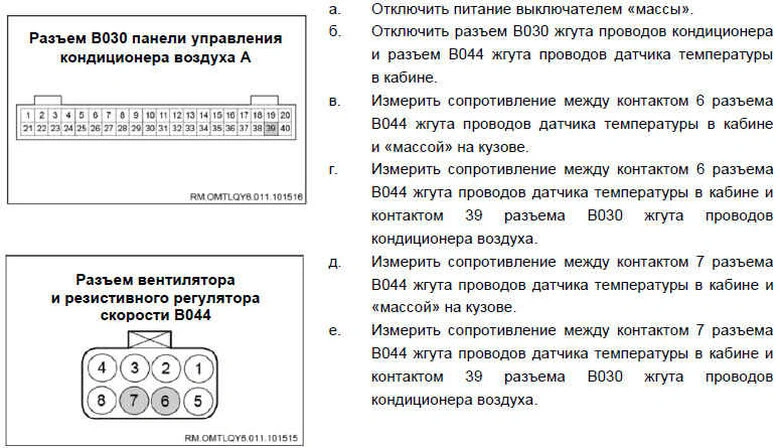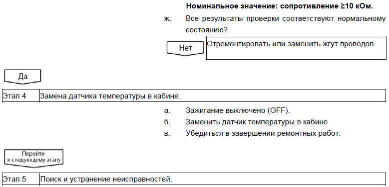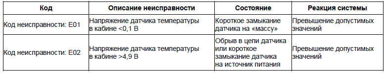 Вероятно неисправные детали и узлы: датчик температуры воздуха в кабине / жгут проводов