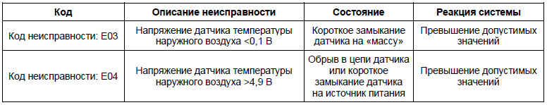 Неисправность датчика температуры наружного воздуха