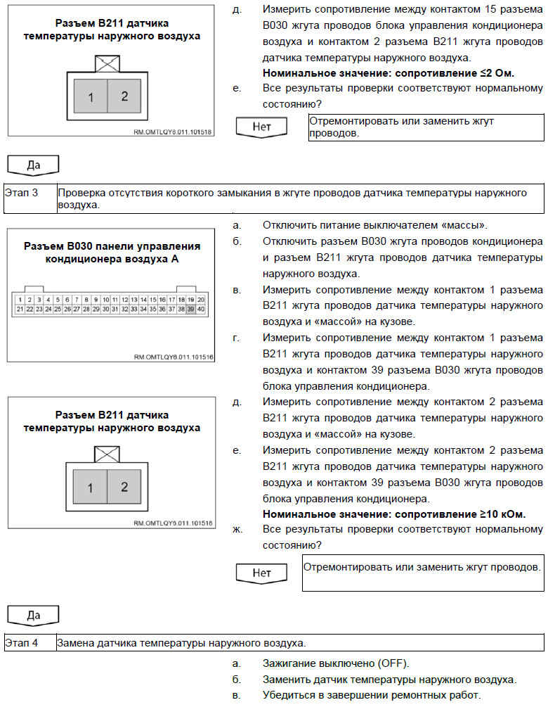 Вероятно неисправные детали и узлы: датчик температуры наружного воздуха / жгут проводов