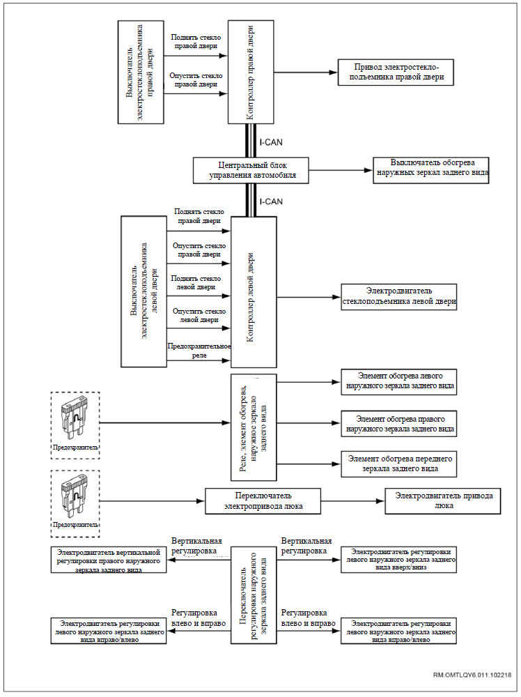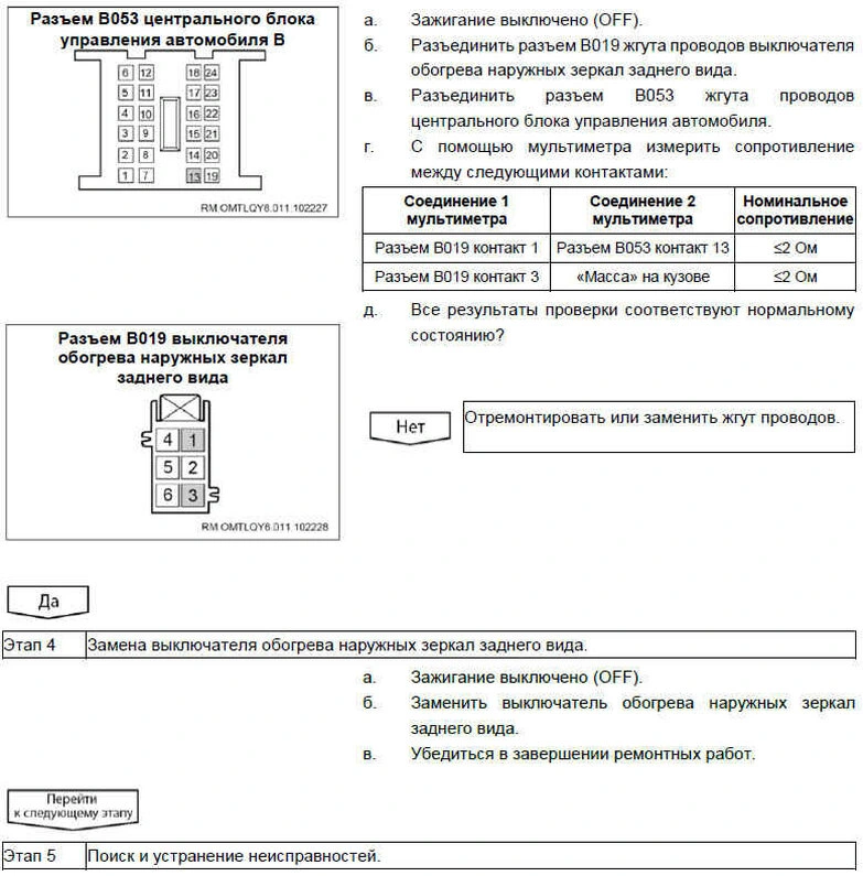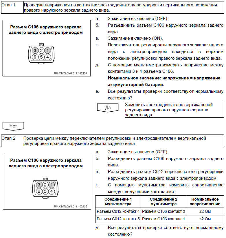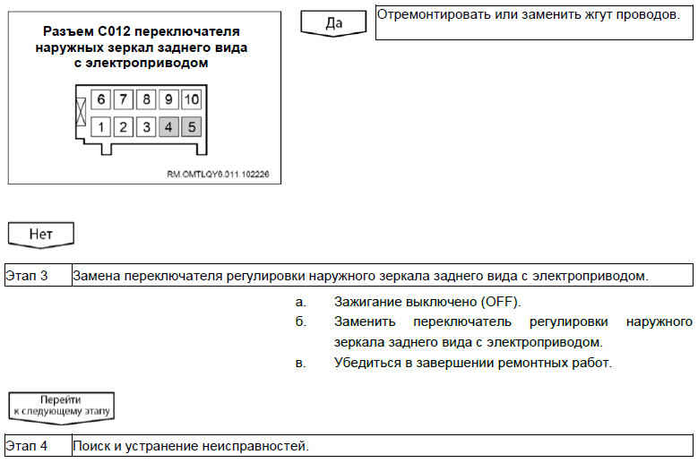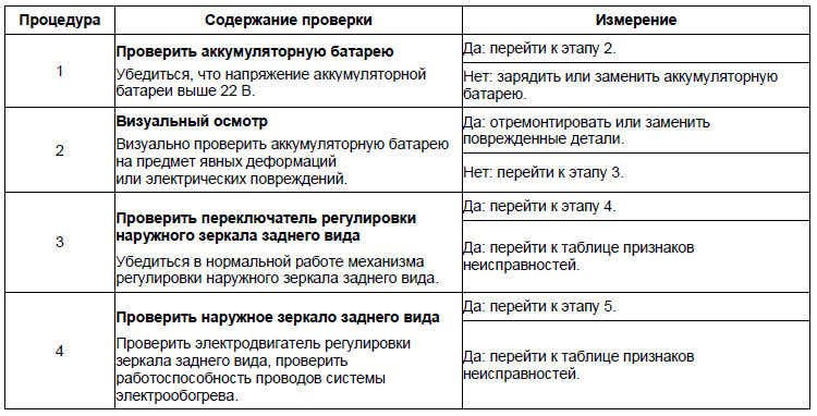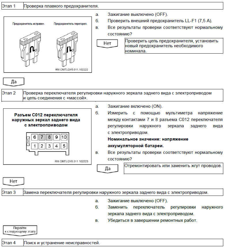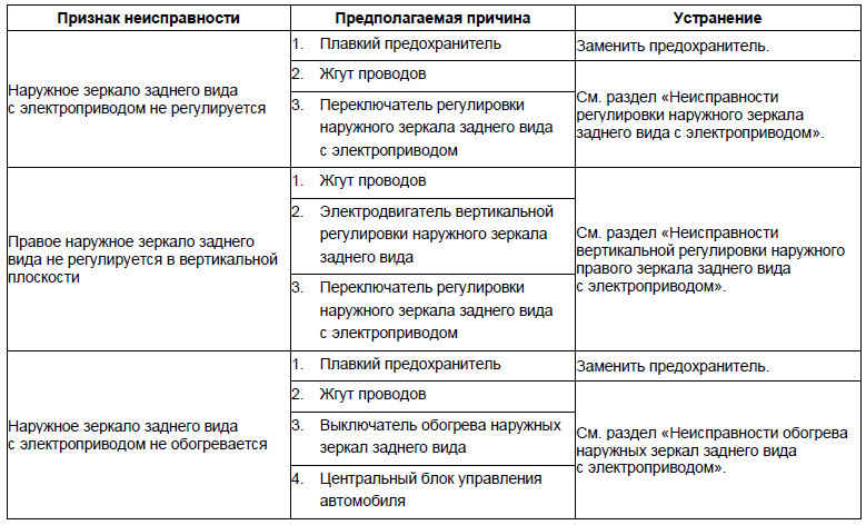 При поиске причин неисправности регулировки другого наружного зеркала заднего вида использовать аналогичный порядок действий.