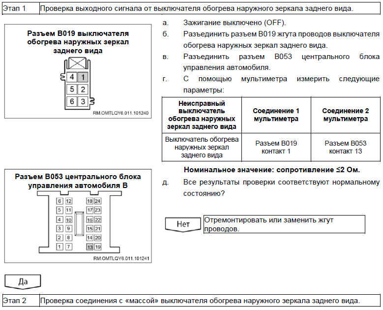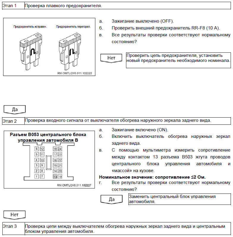 Неисправность элемента обогрева наружного зеркала заднего вида