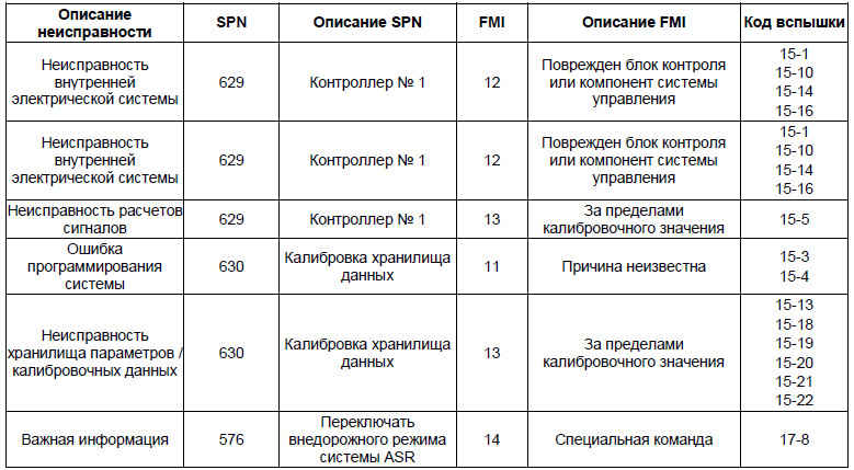 3. Неисправность, соответствующую коду вспышек контрольной лампы, можно определить, воспользовавшись перечнем кодов неисправностей, предоставленным производителем, например, 15-5 и 17-8.