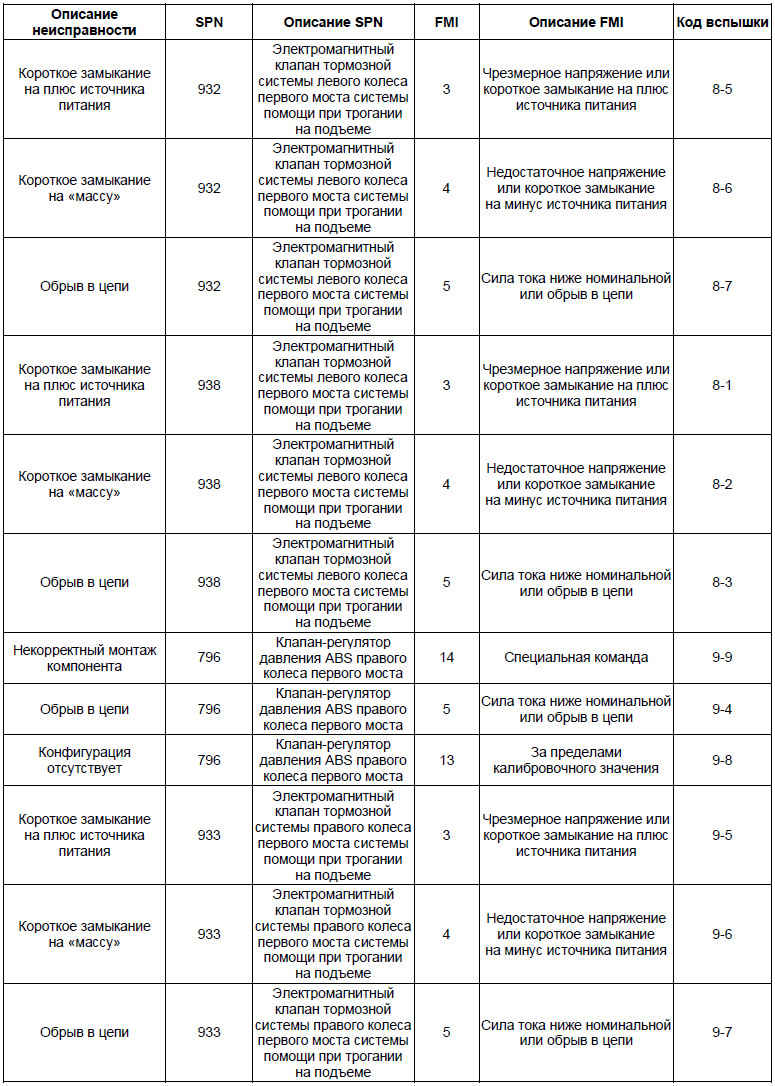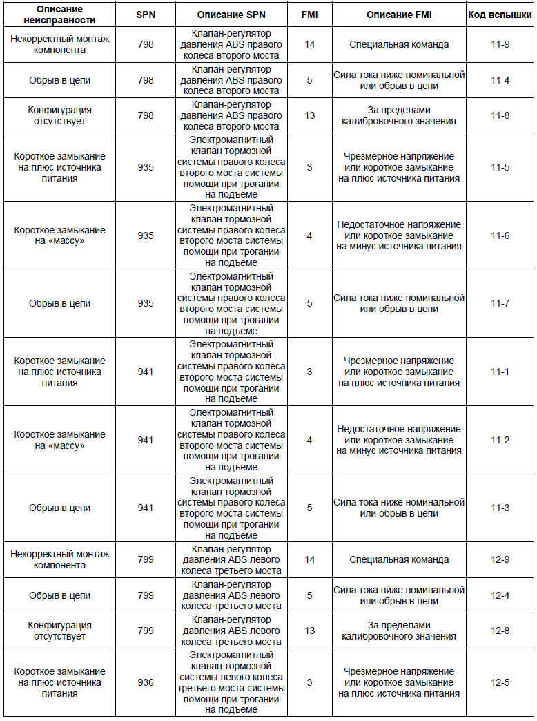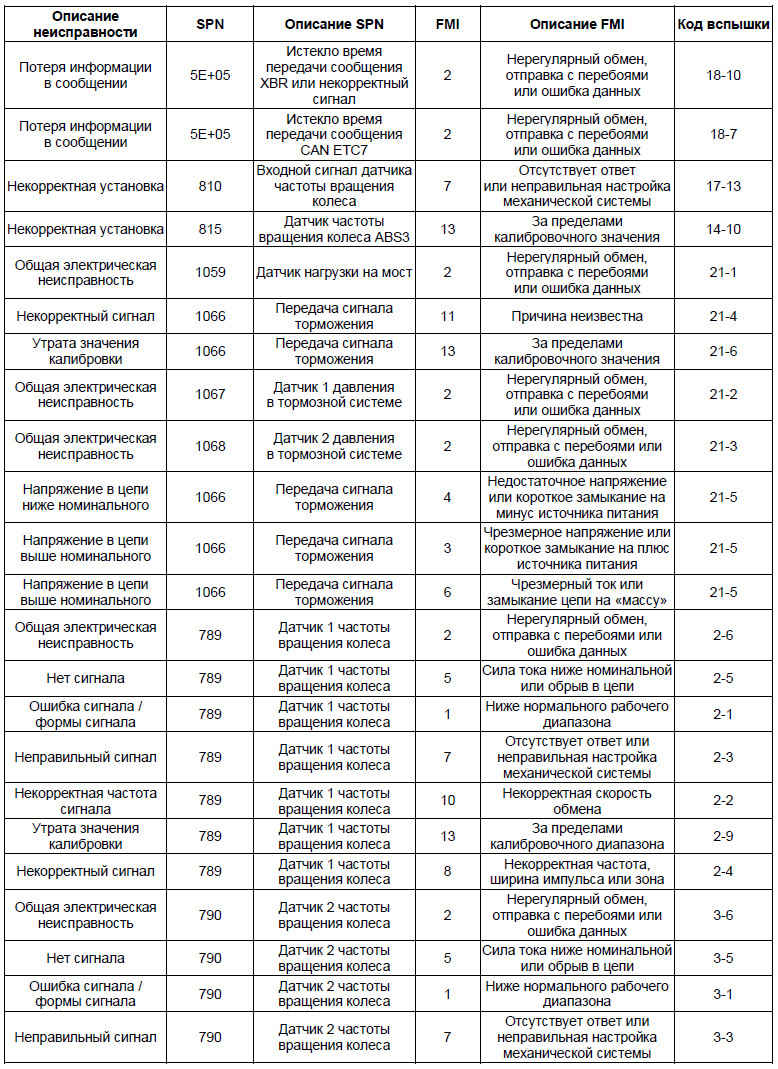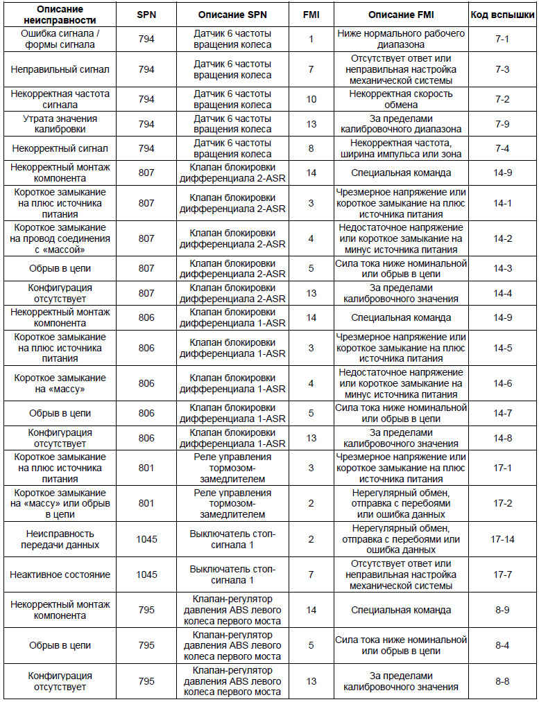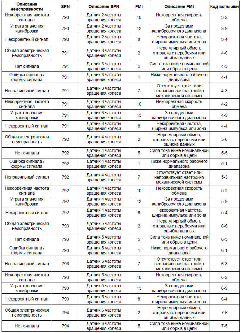 • На основании перечня кодов неисправностей можно определить точное место возникновения неисправности в системе ABS и выполнить его проверку, устранить неисправность согласно инструкциям, приведенным в перечне кодов неисправностей.