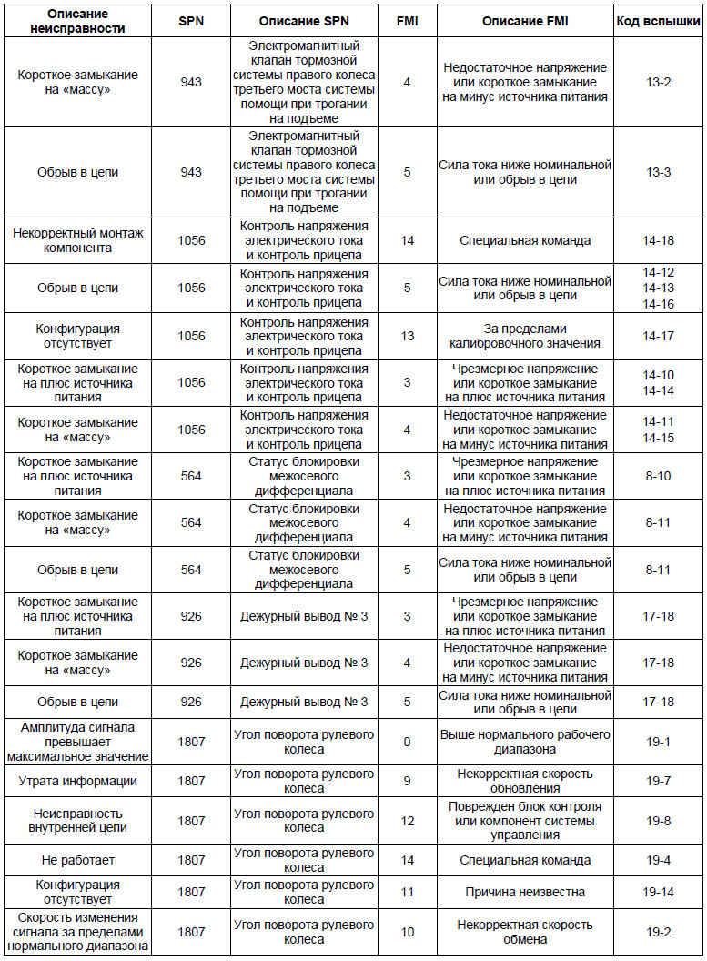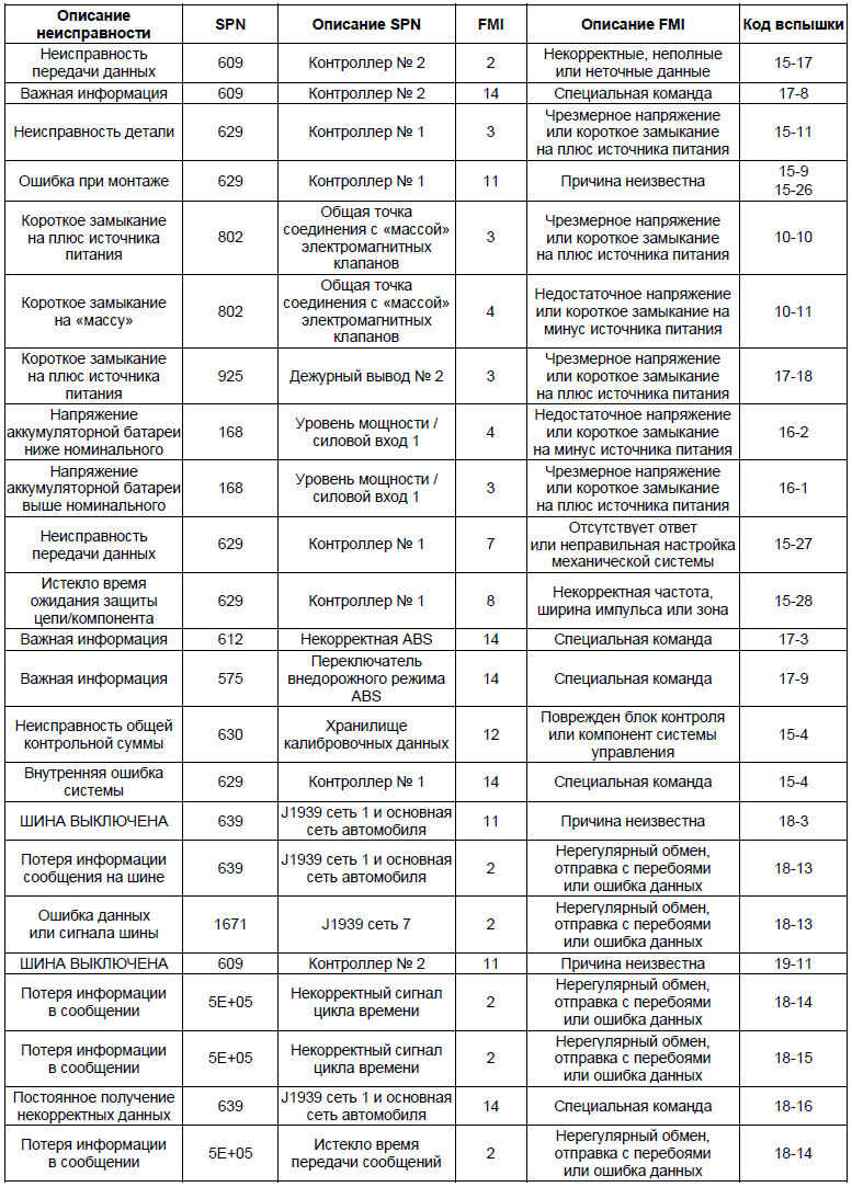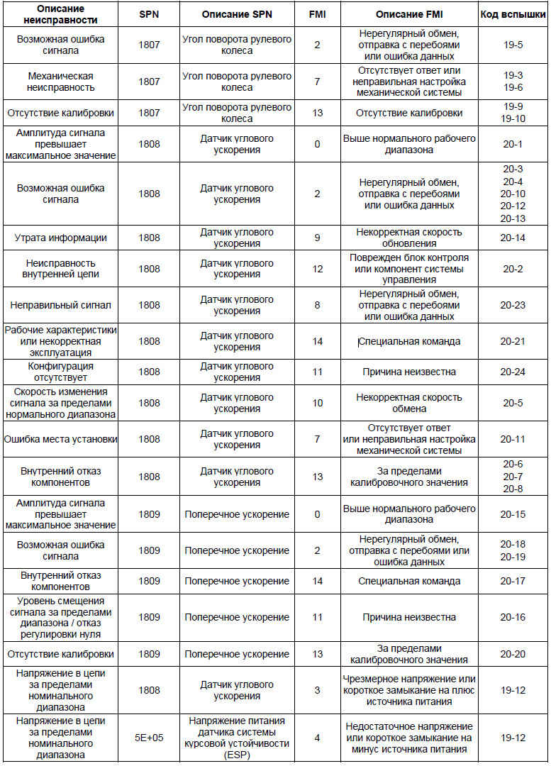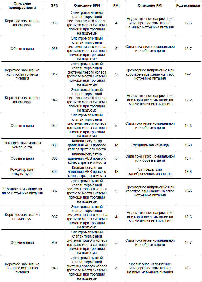 • На основании перечня кодов неисправностей можно определить точное место возникновения неисправности в системе ABS и выполнить его проверку, устранить неисправность согласно инструкциям, приведенным в перечне кодов неисправностей.