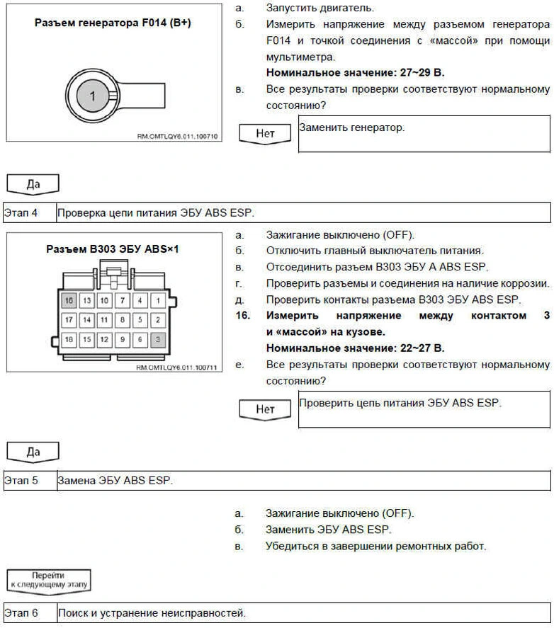 FOTON AUMAN Неисправности системы ABS