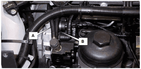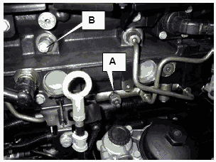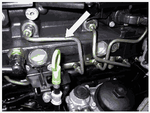 • Демонтировать топливопровод (A) между клапаном ограничения давления DBV и коллектором для слива топлива
