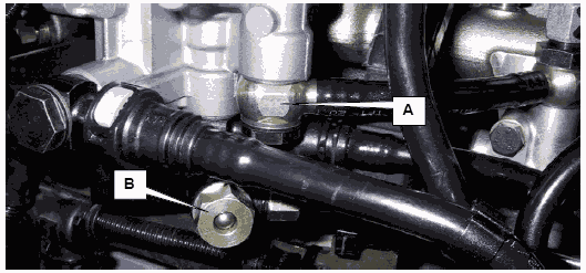 • A = Подключение для подачи топлива от топливного резервуара к двигателю