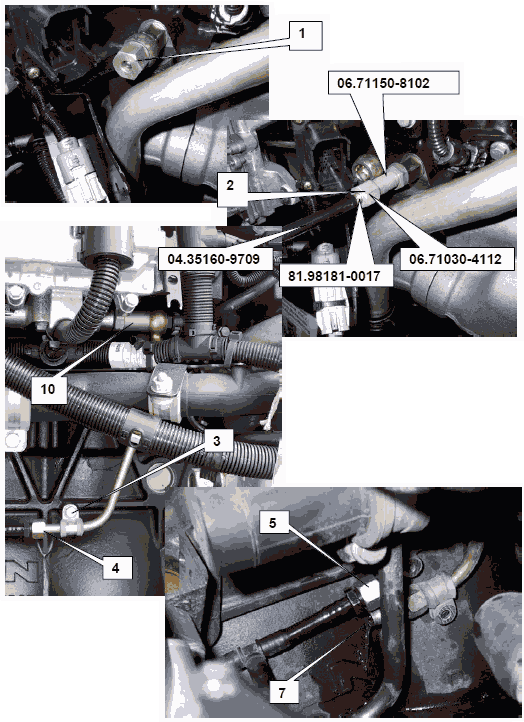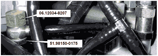 • Плотно закрыть соединительные трубопроводы, ведущие от соединительных штуцеров факельного устройства к коллектору просачивающегося топлива, с помощью полого болта 51.98150-0175 и перекидной гайки 06.12034-8207.