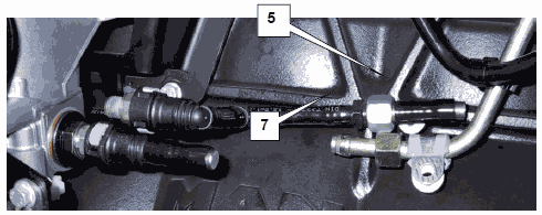 7) Проверить, выступает ли топливо на открытом конце трубы. При работающем двигателе допускается только выход нескольких капель топлива. На рисунке на предыдущей странице показано выступающее топливо, т.е. неисправный клапан ограничения давления.