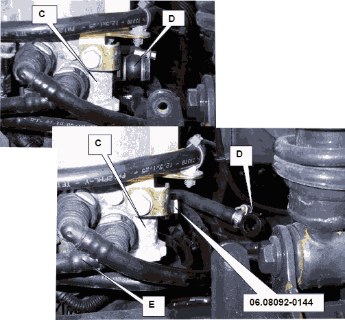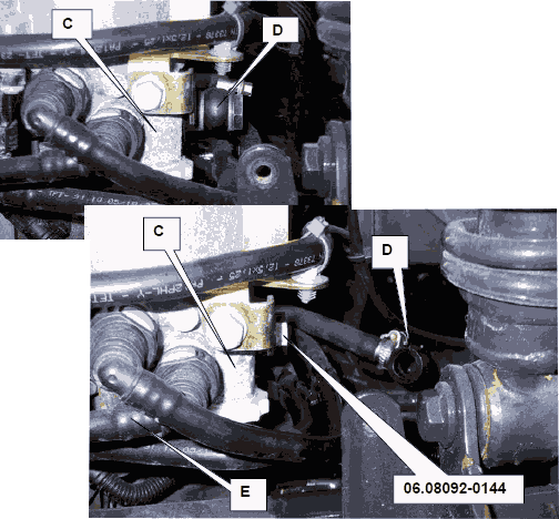 • Демонтировать кольцевой штуцер (D) и закрыть подключение на топливном центре KSC резьбовой заглушкой 06.08092-0144.