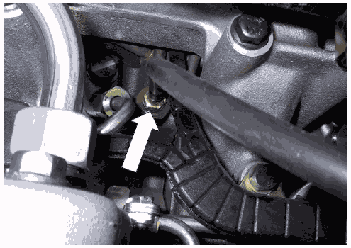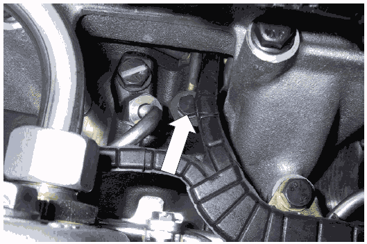 • Демонтировать полый болт трубопровода слива одного цилиндра (стрелка).