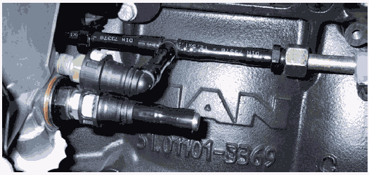 Если при замере общей величины утечки определяется ее увеличение, а клапан ограничения давления DBV герметичен, то с большой степенью вероятности неполадку можно найти в зоне одного, а иногда и двух инжекторов. Так как в двигателе D28-Motor вытекающее топливо на каждом цилиндре выводится отдельно, имеется возможность проведения проверки герметичности штуцера и инжектора каждого отдельного цилиндра. Для этого необходимо, чтобы коллектор для утечки топлива был демонтирован, а на каждой головке цилиндра на подключении стока был установлен соединительный шланг.