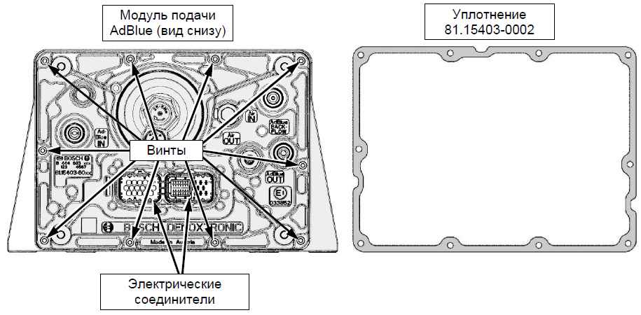 Электрические соединители с нижней стороны модуля подачи AdBlue ни в коем случае не должны контактировать с раствором мочевины.