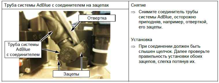- Снятие и установка соединителя трубы системы AdBlue