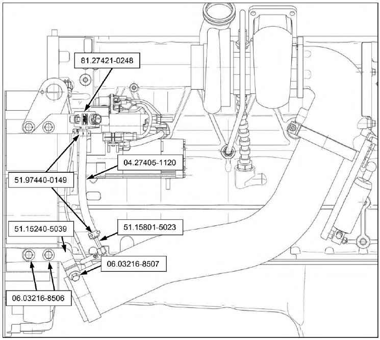 => Подключить шланг 04.27405-1120 (270 мм) к датчику и патрубку с помощью двух хомутов 51.97440-0149.