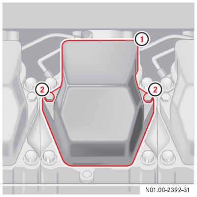 Отвернуть болты с шестигранной головкой 2 крышки головки блока цилиндров 1.