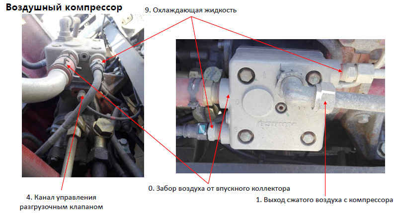 9 = Подключение для подачи охлаждающей жидкости (компрессор)