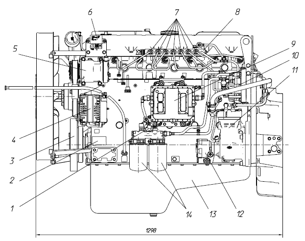 - 12 – трубка подвода топлива к ТНВД;